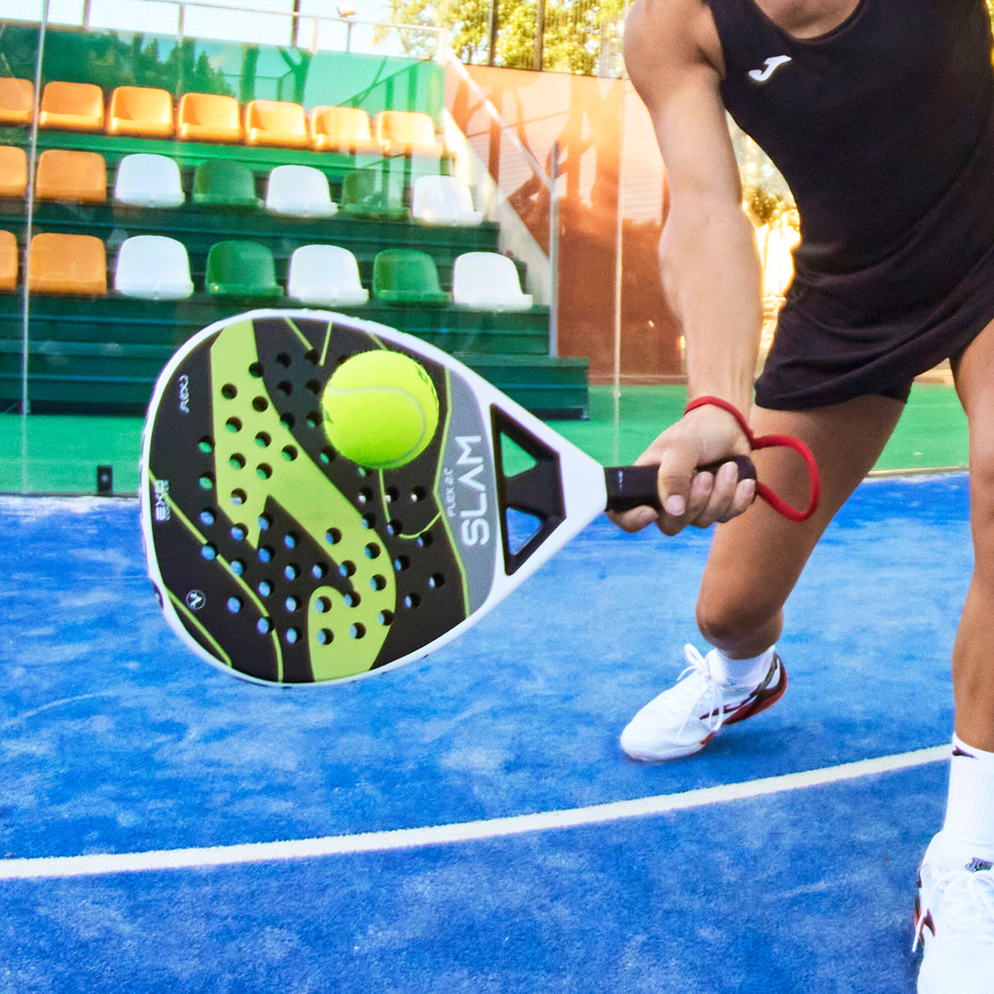 La pala Slam Flex incorpora también el sistema VIBRA-OUT Slam, que logra reducir hasta un 40% las vibraciones durante el golpe, minimizando el impacto y mejorando la comodidad del jugador en cada intercambio. Esta combinación de tecnologías asegura una experiencia de juego superior, donde el control, la potencia, y la comodidad se unen para ofrecerte lo mejor en la cancha.